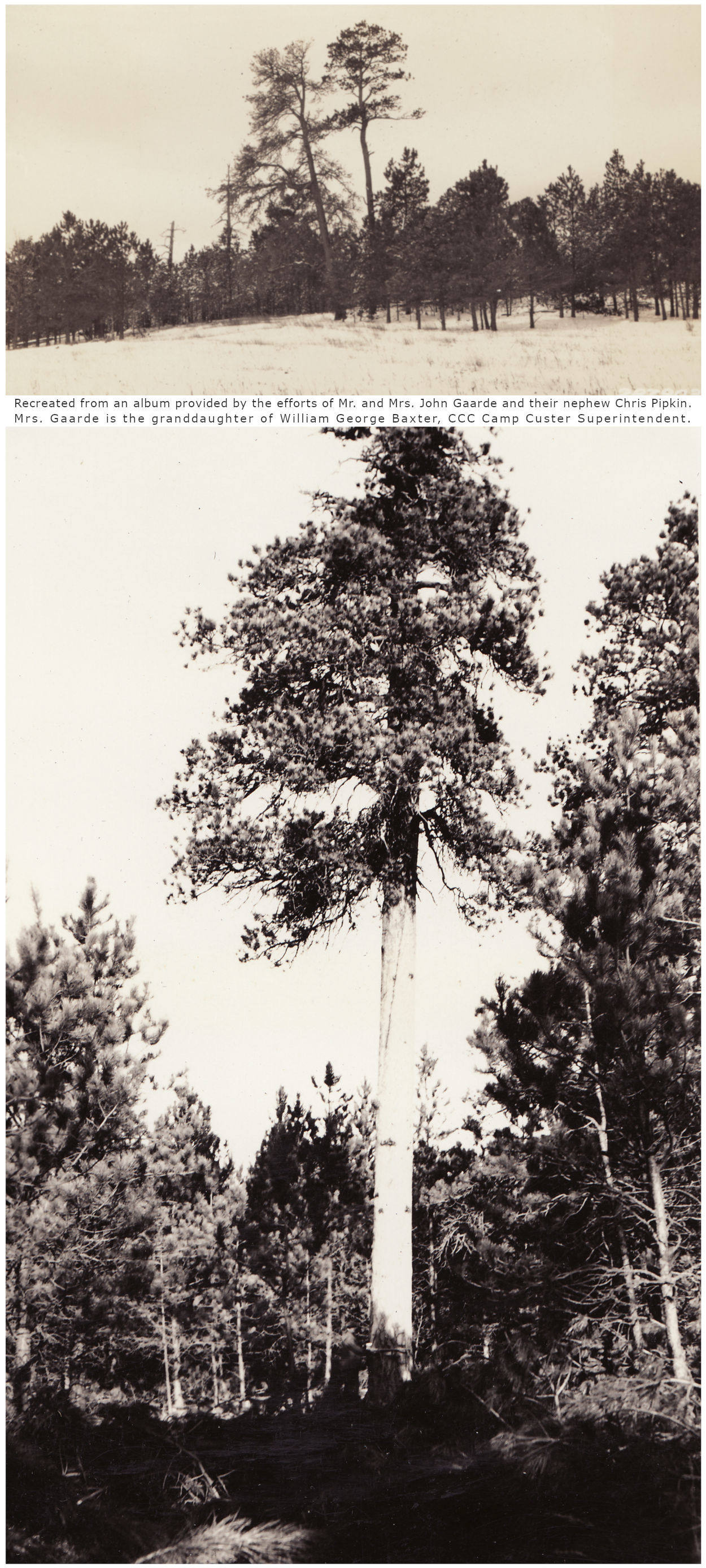 William George Baxter's photo album provide by the efforts of Mr. and Mrs. John Gaarde and their nephew Chris Pipkin. Mrs. Gaarde is the granddaughter of William George Baxter, CCC Camp Custer Superintendent.
