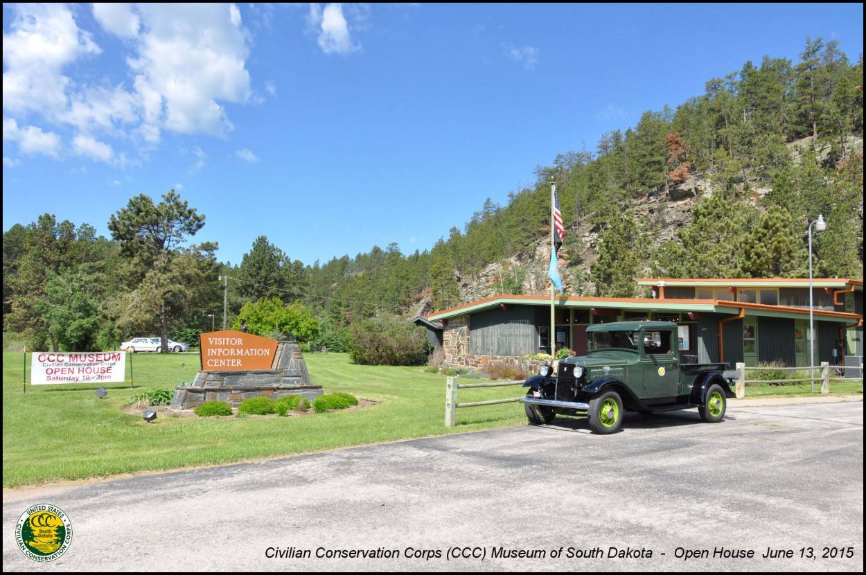 On June 13, 2015 the Civilian Conservation Corps (CCC) Museum of South Dakota held it annual open house. Kerry Conner drove over in his vintage CCC truck to attend the event. Special guests were CCC workers: Jay Hendricksen, Hill City; Pat Ryan, Custer; Elmore Omdahl, Rapid City and Melvin Fernau (age 99), New Underwood. About 70 guests enjoyed touring the museum and visiting with the men.