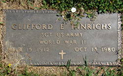 Clifford E Hinrichs was born March 15, 1912 in Canistota, McCook County, South Dakota, USA and died October 13, 1980 in Reno, Washoe County, Nevada, USA. Clifford Hinrichs is buried in Canistota Cemetery, Canistota, McCook County, South Dakota. Mr. Hinrichs served his country during World War II in the US Army.